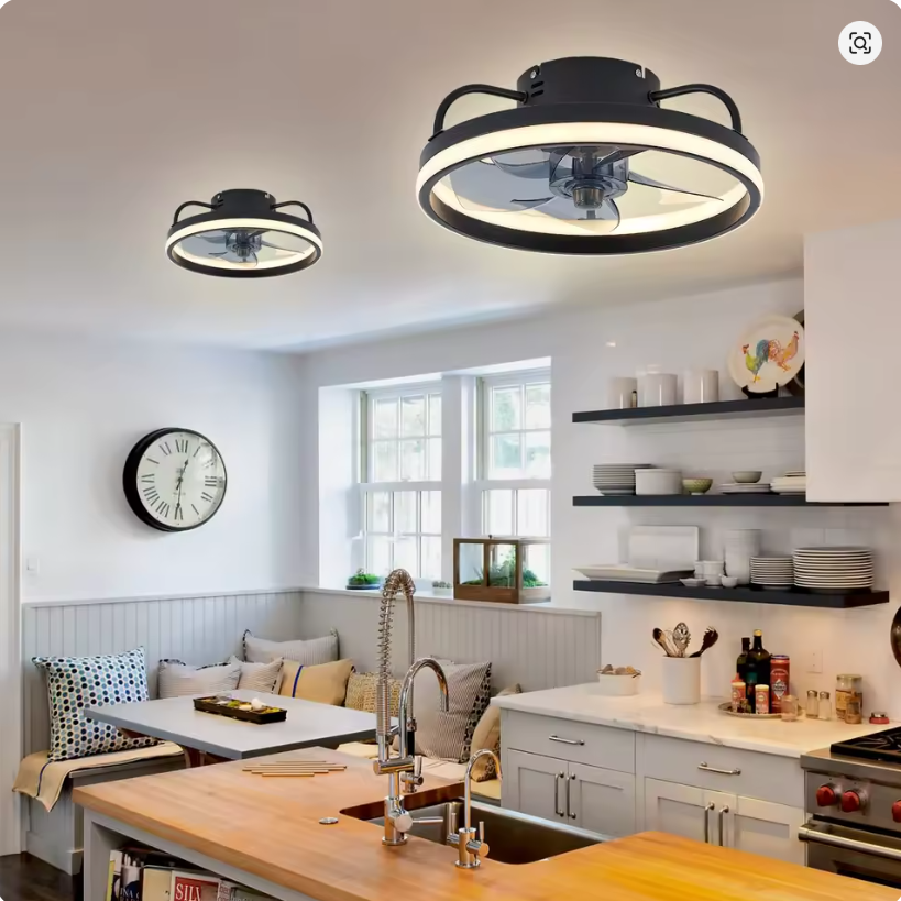 この天井ファンはキッチンにぴったりで、良好な空気循環と効率的な照明を提供し、料理中も快適で涼しい環境を保ちます!🍳💡